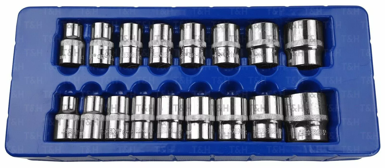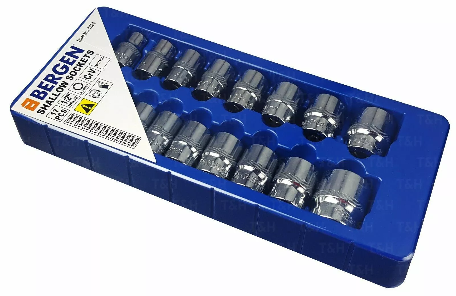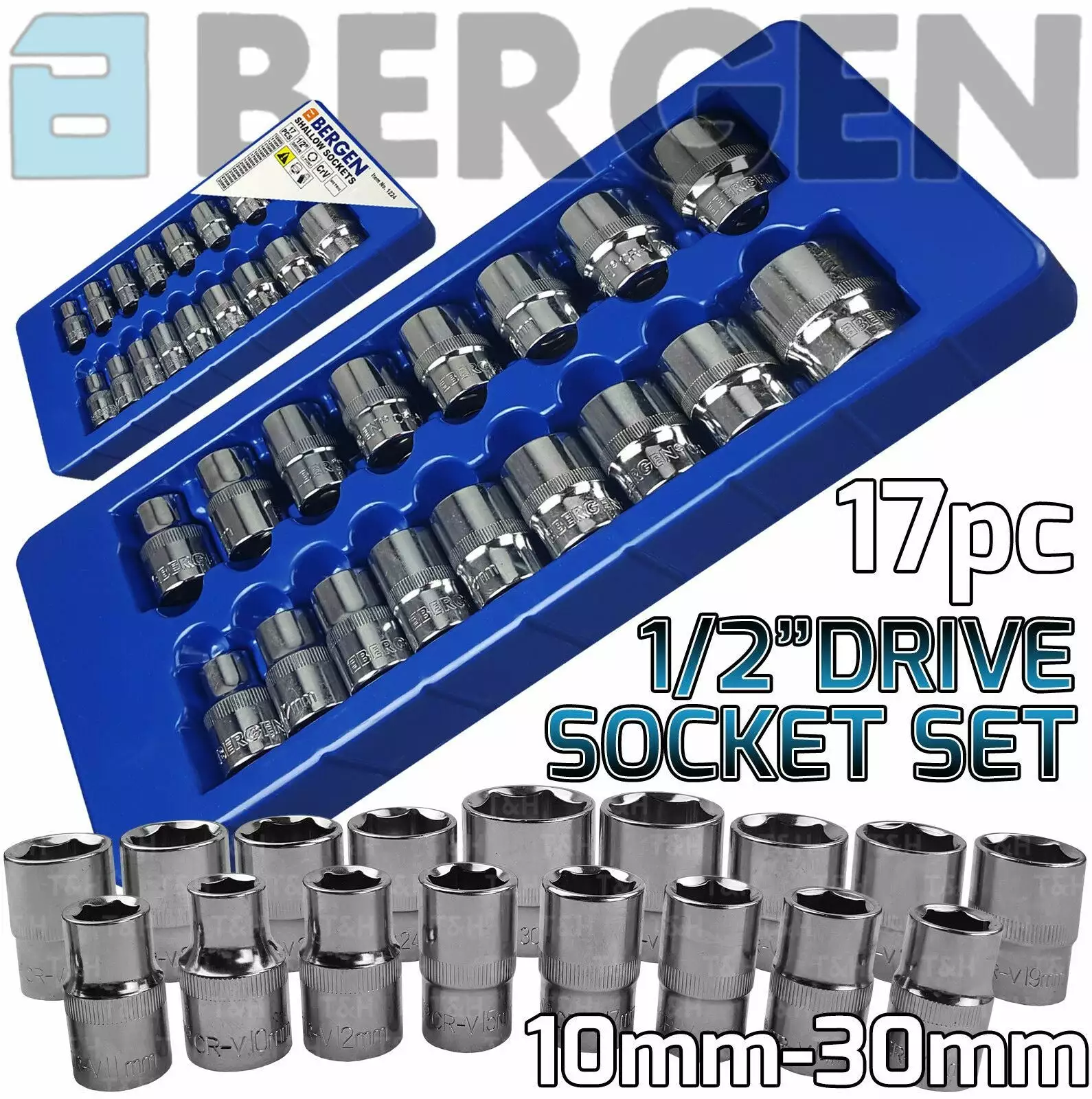 US PRO By BERGEN BERGEN Socket Set 17pc 1/2″ Drive Shallow Sockets Set 10mm-30mm Socket Tool Set