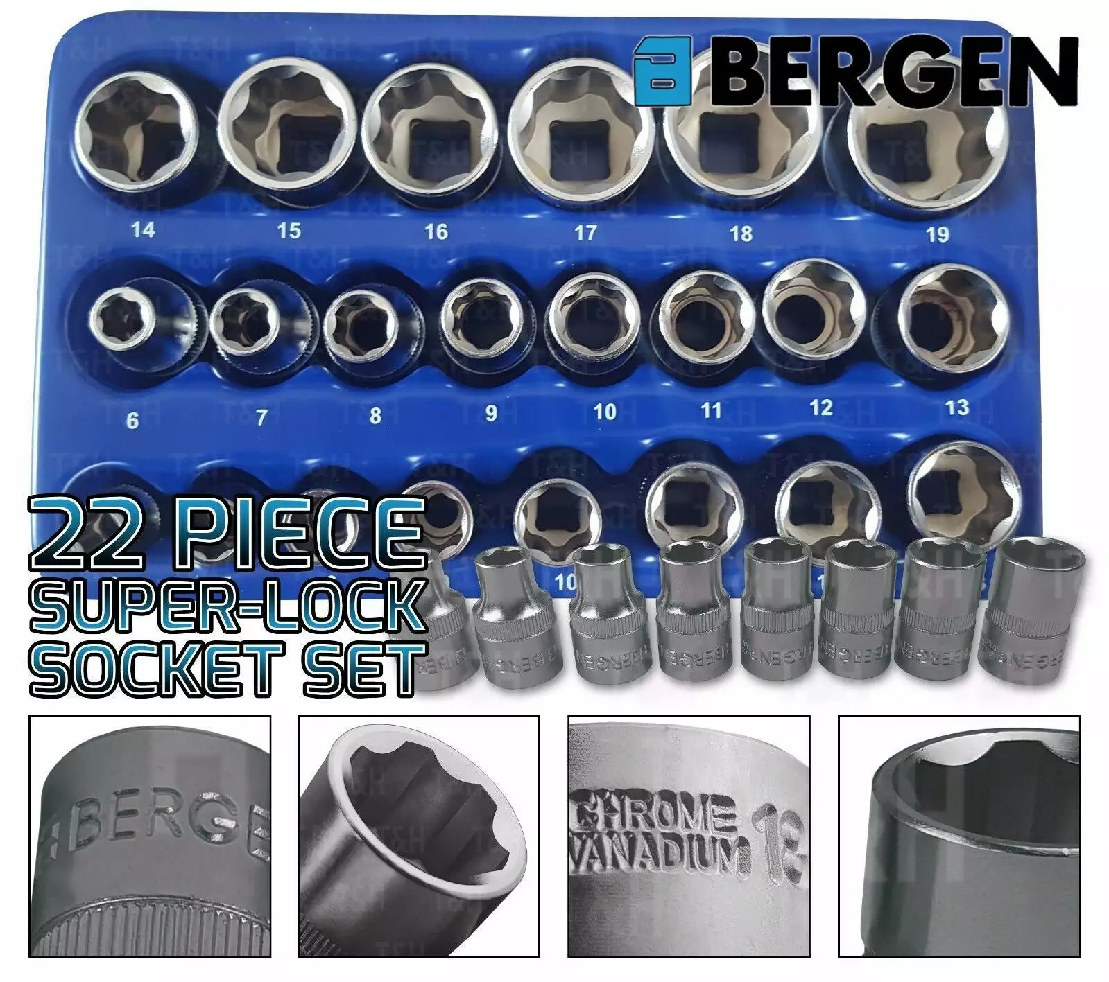 US PRO By BERGEN BERGEN Super-Lock Shallow Socket Set 22pc 1/4″ 6-13mm & 3/8″ 6-19mm Drive Socke