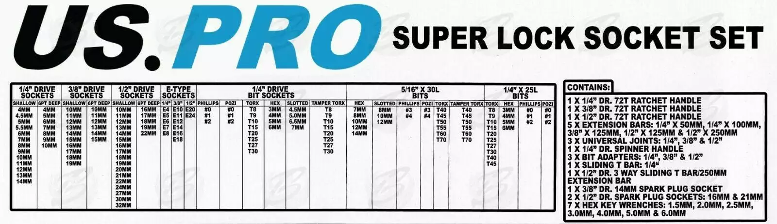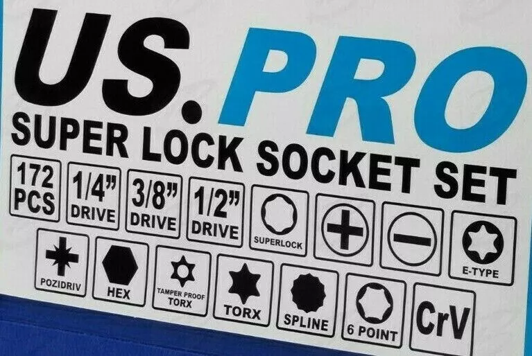 US PRO By BERGEN BERGEN Super Lock Socket & Ratchet Set E-Torx 6 Point HEX TORX 1/4″ 3/8″ 1/2″