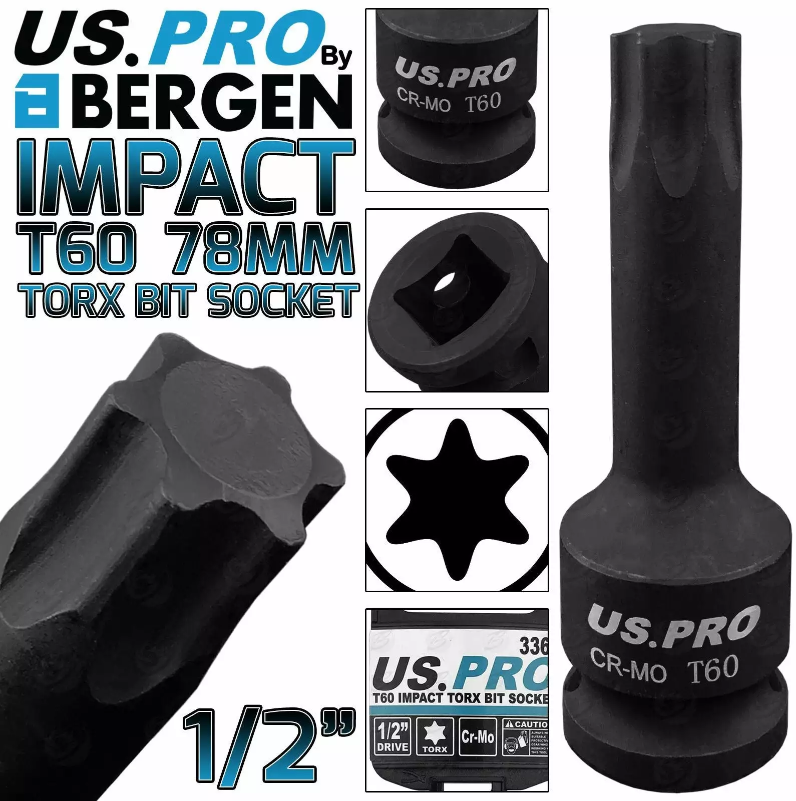 US PRO By BERGEN BERGEN T60 IMPACT TORX Bit Socket 1/2″Dr TRX60 78mm Long Reach Impact Star Torx