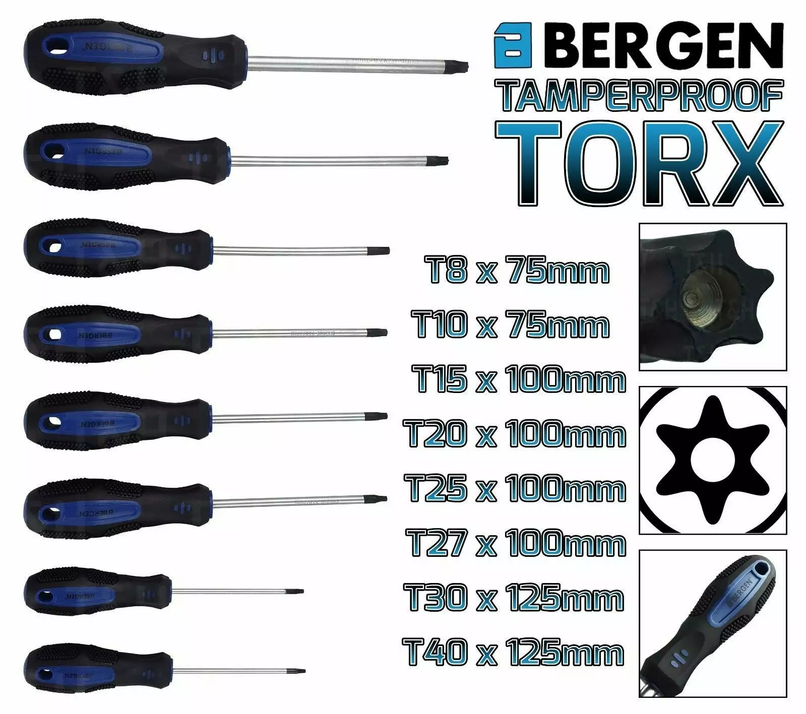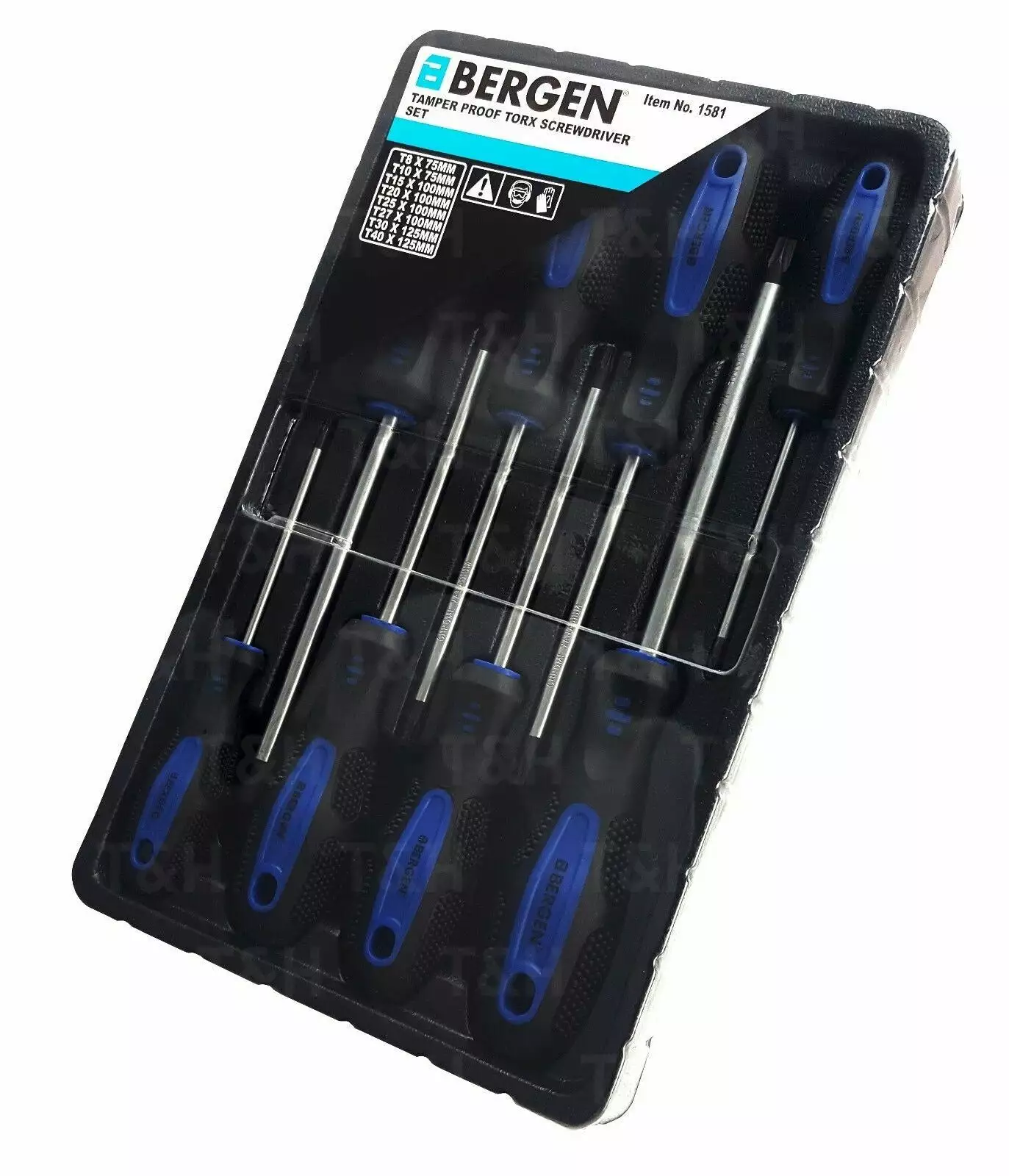 US PRO By BERGEN BERGEN Tamperproof TORX Magnetic Screwdriver Set Star Set T8-T40 Torx Drive 8pc