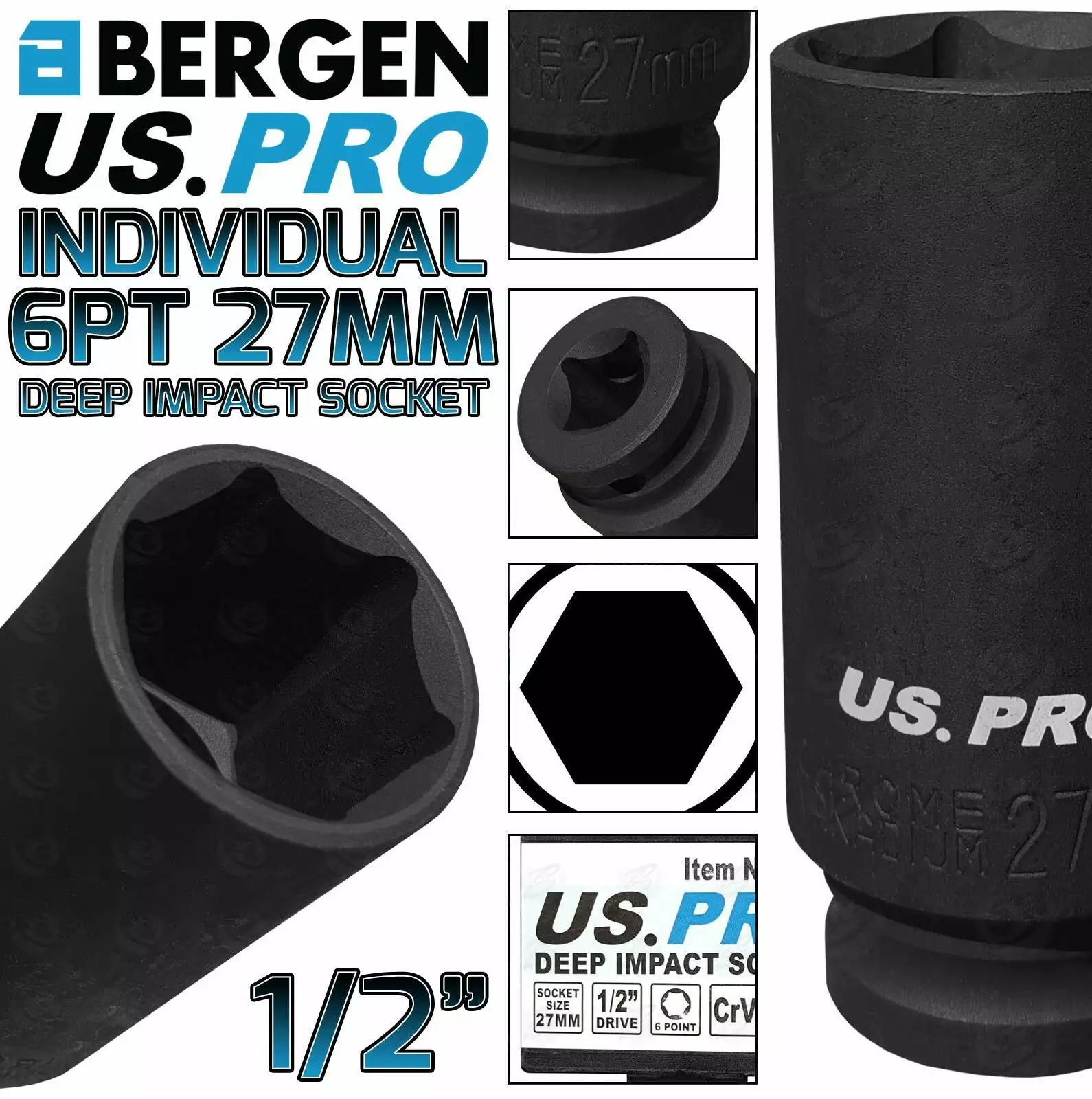 US PRO By BERGEN BERGEN US PRO Deep Impact Socket 27mm 1/2″ Drive 27mm 6 Point