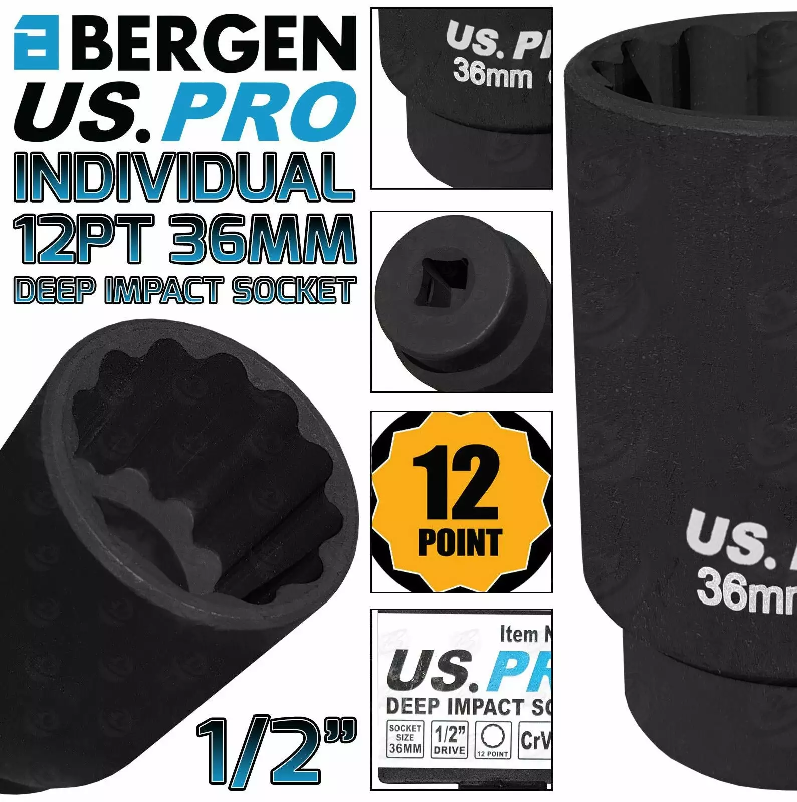 US PRO By BERGEN BERGEN US PRO Deep Impact Socket 36mm 1/2″ Drive 36mm 12 Point