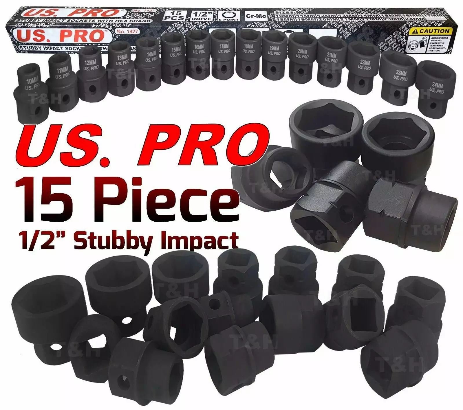 US PRO By BERGEN US PRO 1/2″INCH Drive IMPACT Socket Set Shallow Stubby Sockets 10mm-24mm 6PT Hex