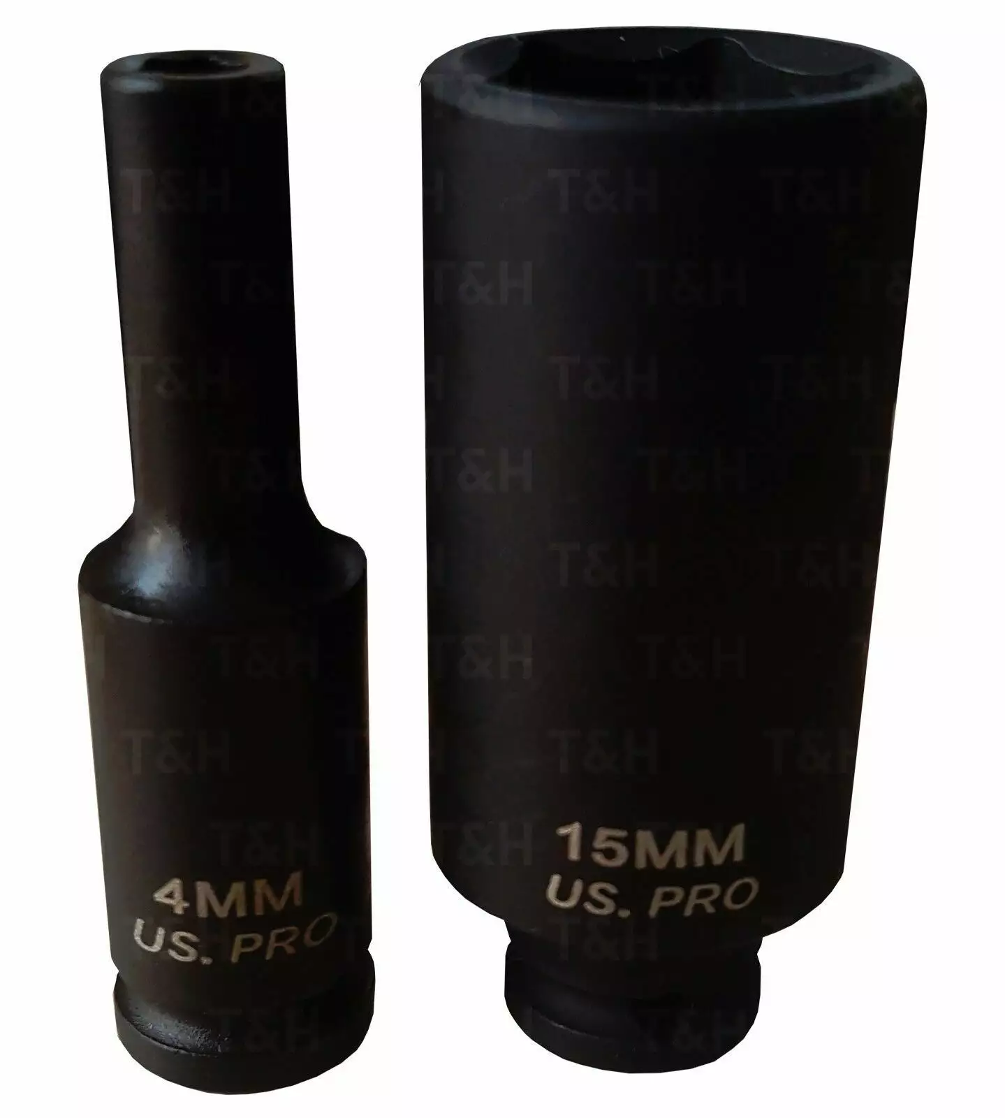 US PRO By BERGEN US PRO 1/4″INCH Drive Deep IMPACT Socket Set Long Reach Sockets 4mm-15mm 6PT Hex
