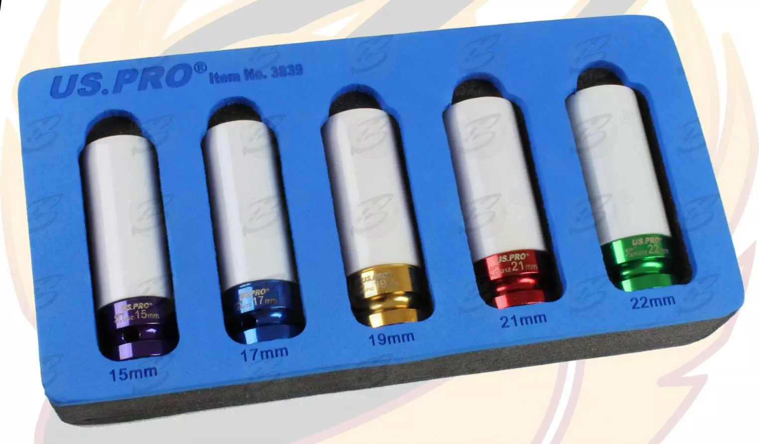 US PRO By BERGEN US.PRO By BERGEN Alloy Wheel Nut DEEP Thin Wall Impact Socket Set 1/2″ Drive 15mm – 22mm