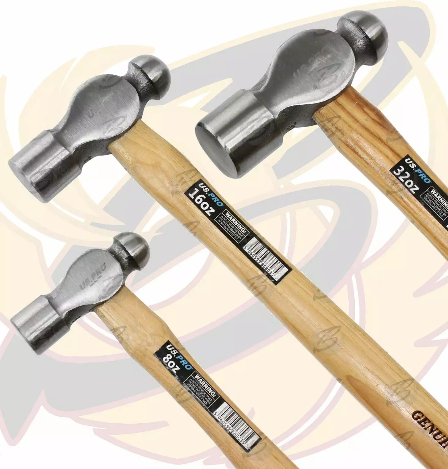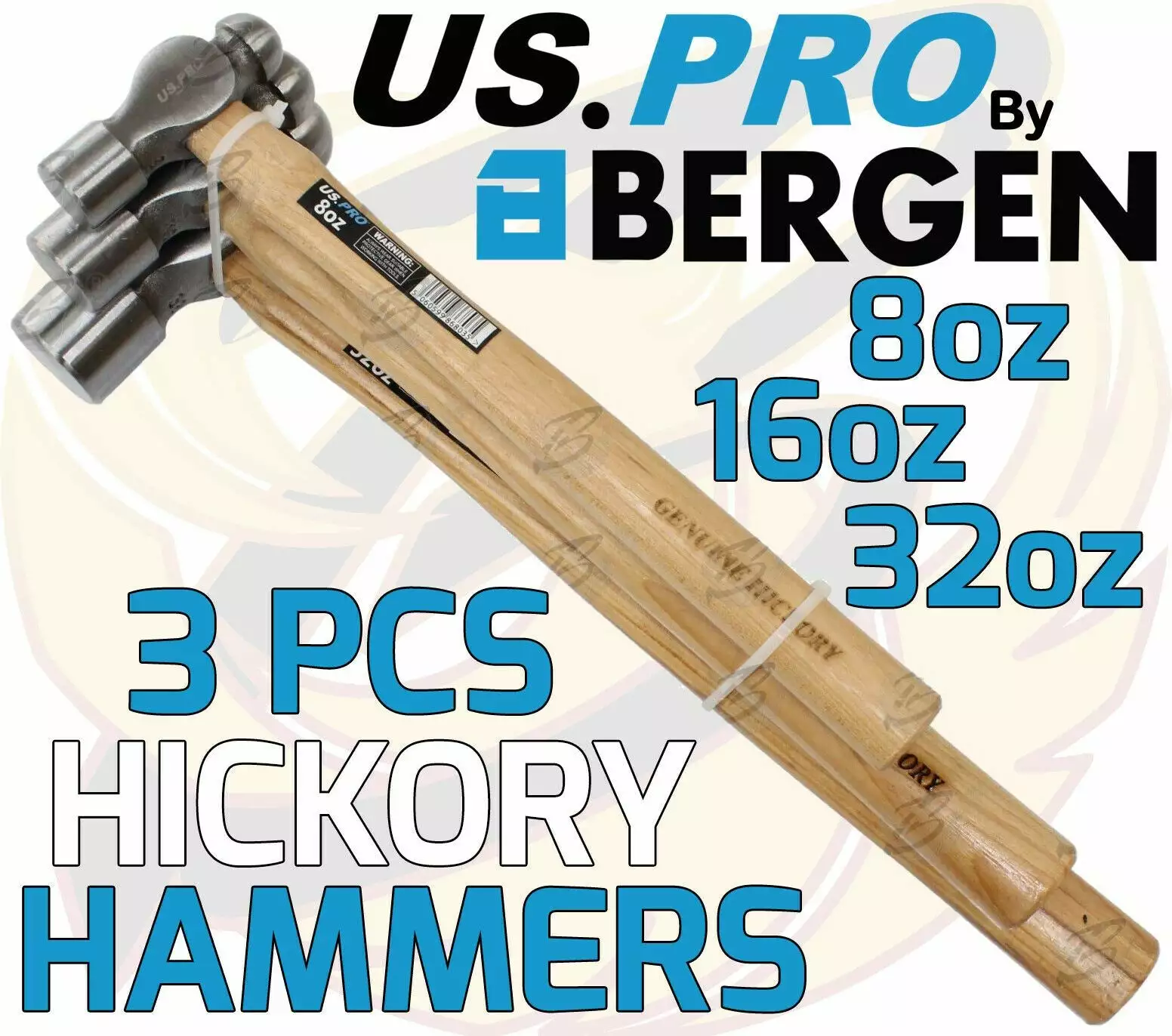 US PRO By BERGEN US.PRO By BERGEN Ball Pein Hickory Hammer Set 3pc Ball Machinist’s Hammers 8oz 16oz 32oz