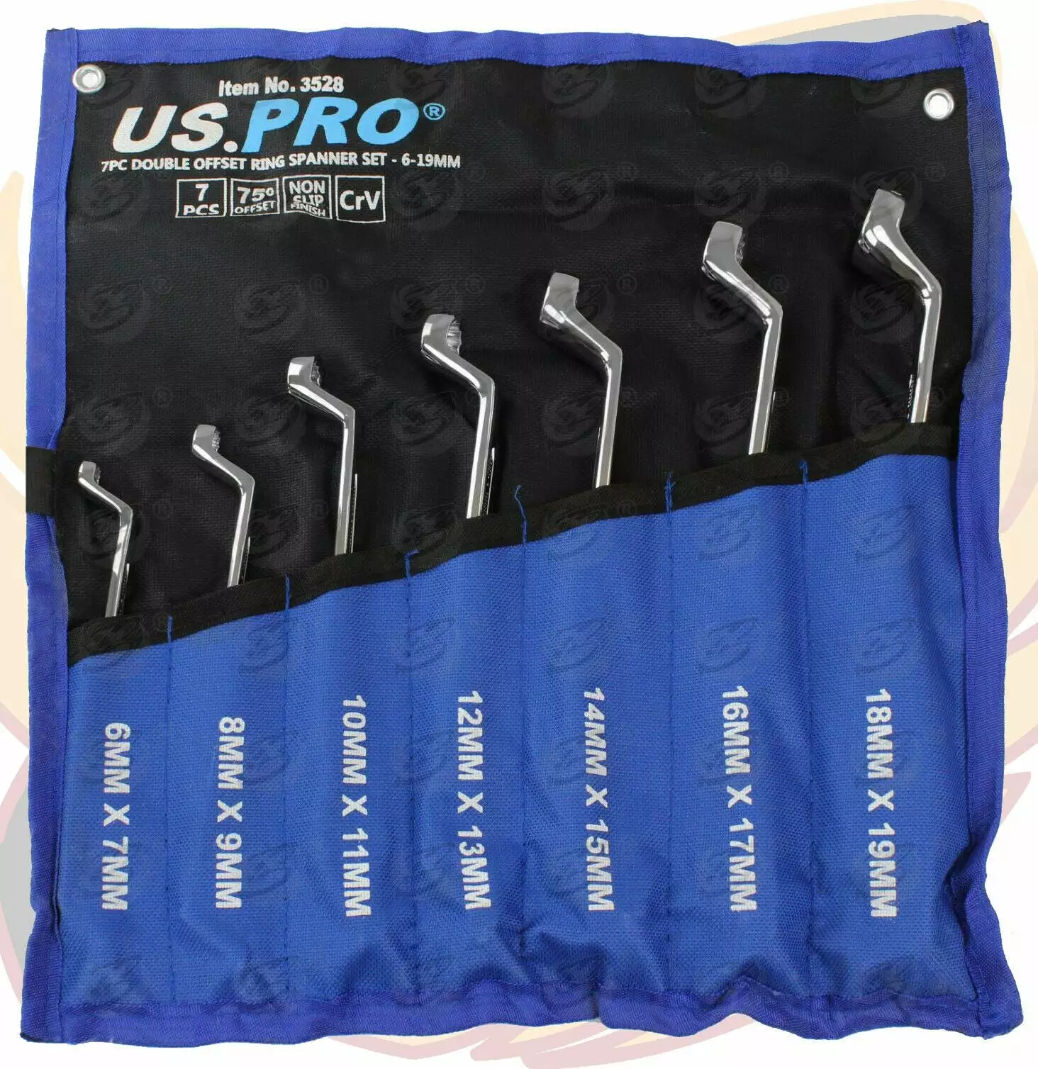 US PRO By BERGEN US.PRO By BERGEN Offset Double Ring Spanners 12 Point Swan Neck Double Box Wrench 7pc Tool