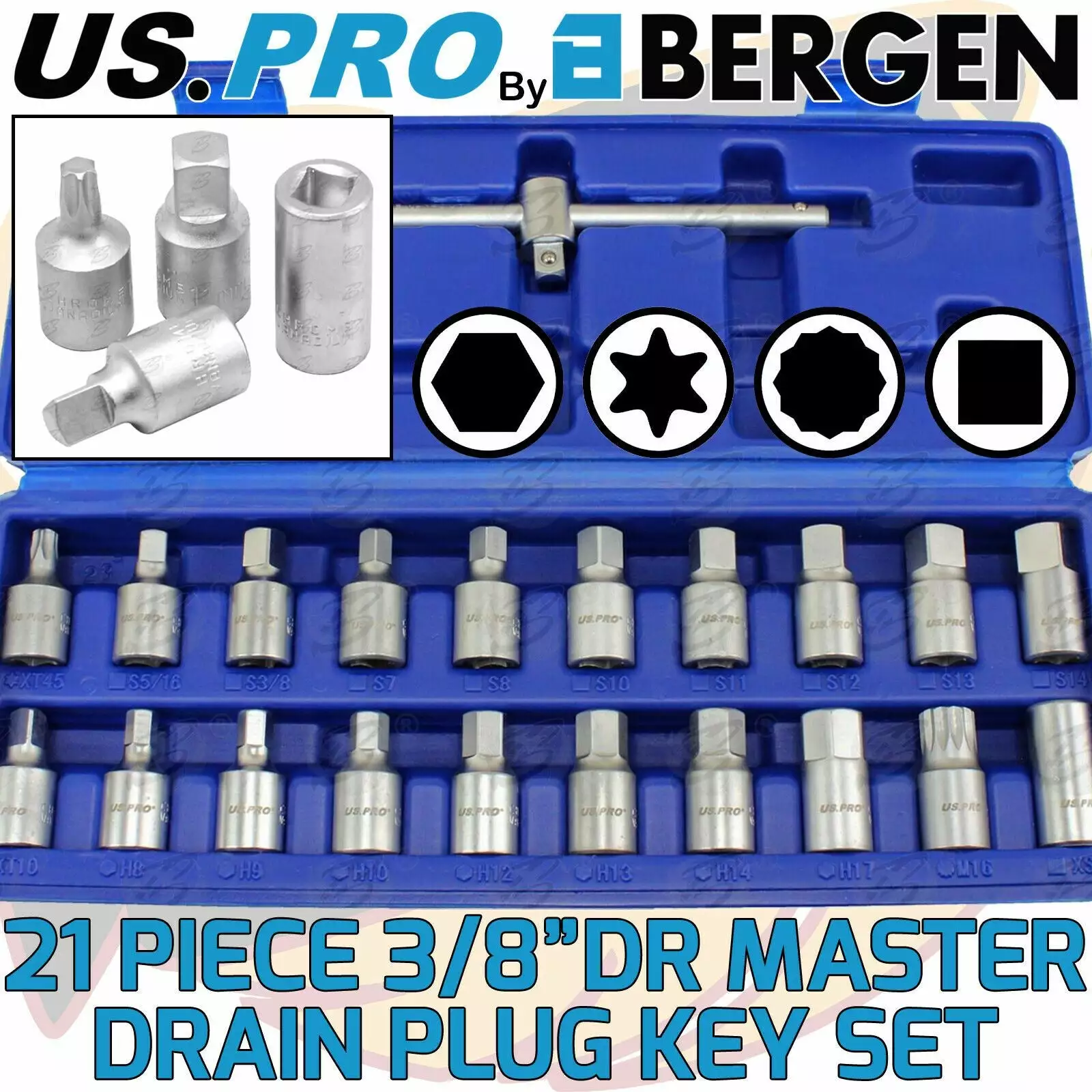 US PRO By BERGEN US PRO Drain Plug Master Key Set 21pc Oil Sump Plug Axle Gearbox Drain Plug Tool