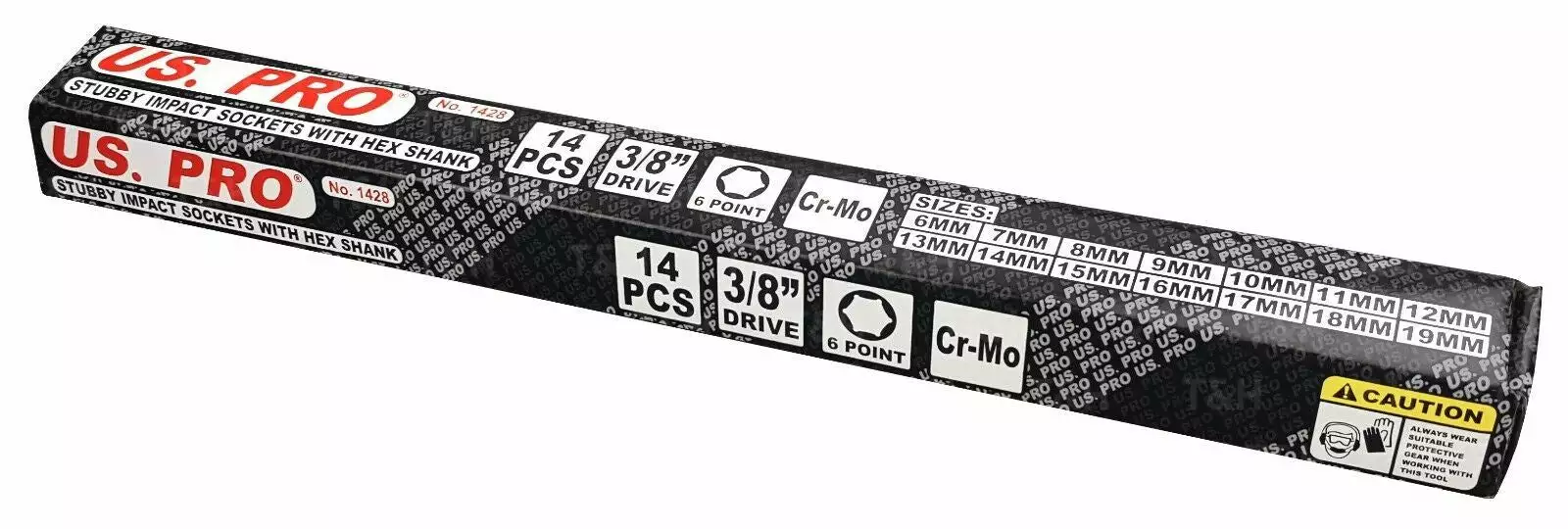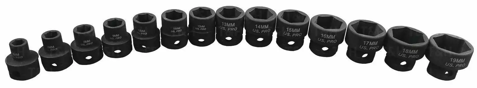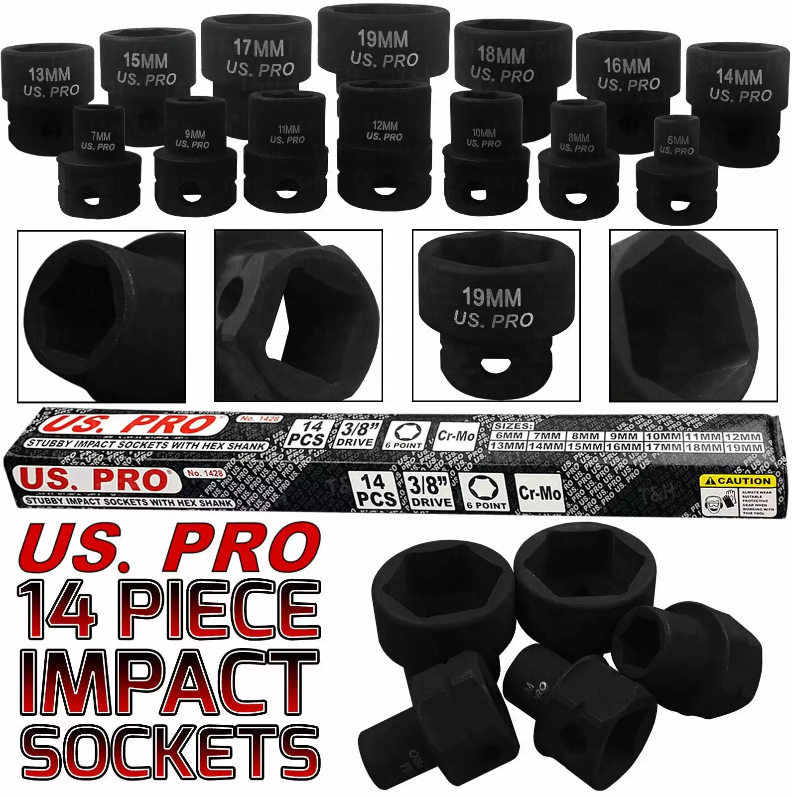 US PRO By BERGEN US PRO IMPACT Sockets Set 3/8″ Dr Shallow Stubby Impact Sockets 6mm-19mm Hex 6pt