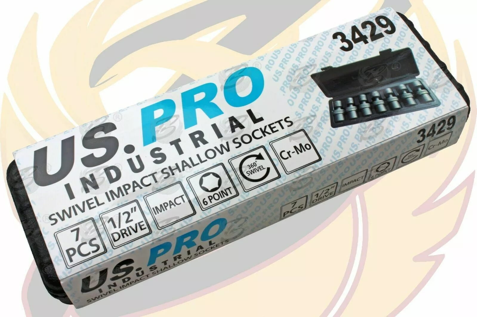US PRO By BERGEN US PRO INDUSTRIAL Impact Swivel Shallow Sockets 1/2″ Drive 6 Point Wobble 3429