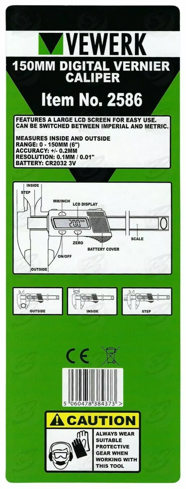 - 150mm 6″ Metric & Imperial LCD Digital Vernier Caliper