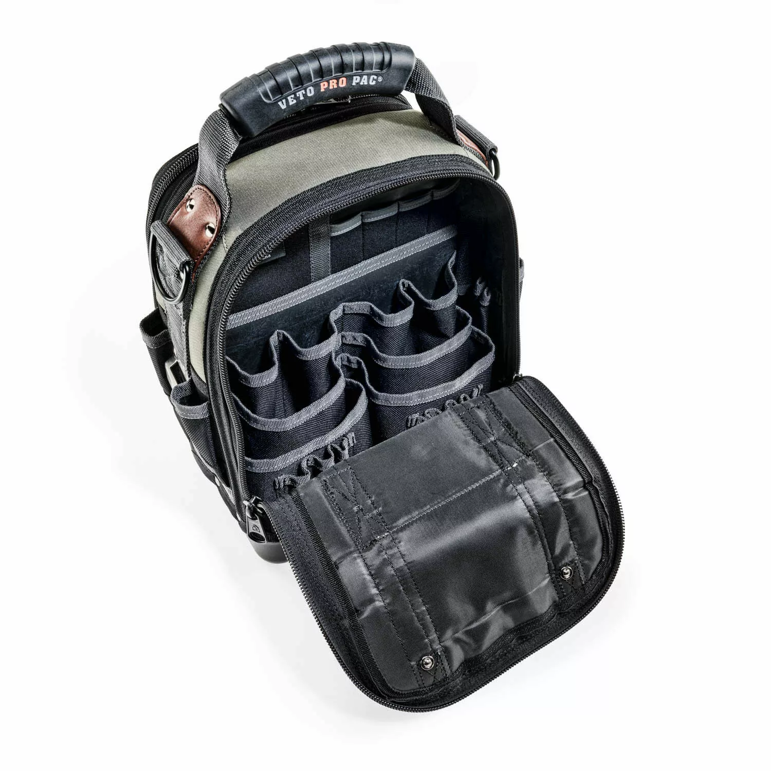 Veto Pro Pac’s Tech MCT is a compact, yet fully featured service, repair or installation tool bag that features everything you have come to expect from Veto Pro Pac: patented center panel, heavy duty construction and stabilizing injection molded waterproof base that keeps tools dry, even in the nastiest of conditions.