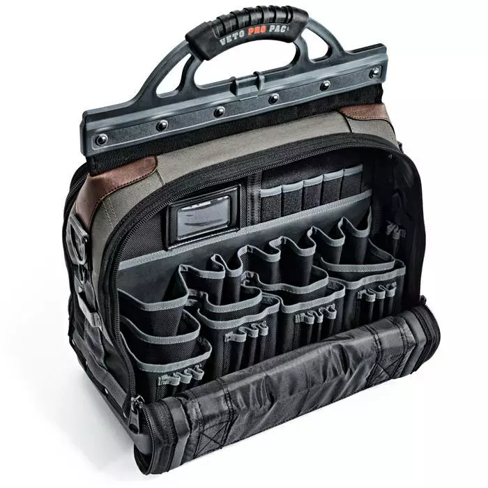 A number of changes have been made to tailor the bag to accommodate service technicians⢠tools and work routines. The TECH-XL sports 80 pockets with ample pocket room for hand tools, parts boxes, meters, a cordless impact drill and other bulkier items. 9 small neoprene pockets have been added for drill bits and bit extensions.