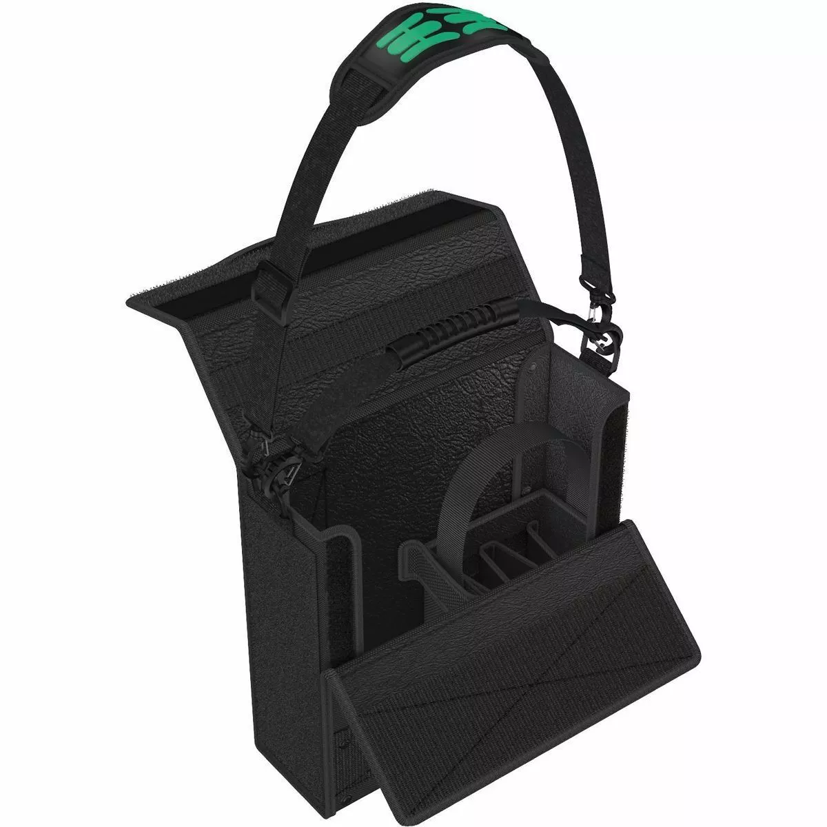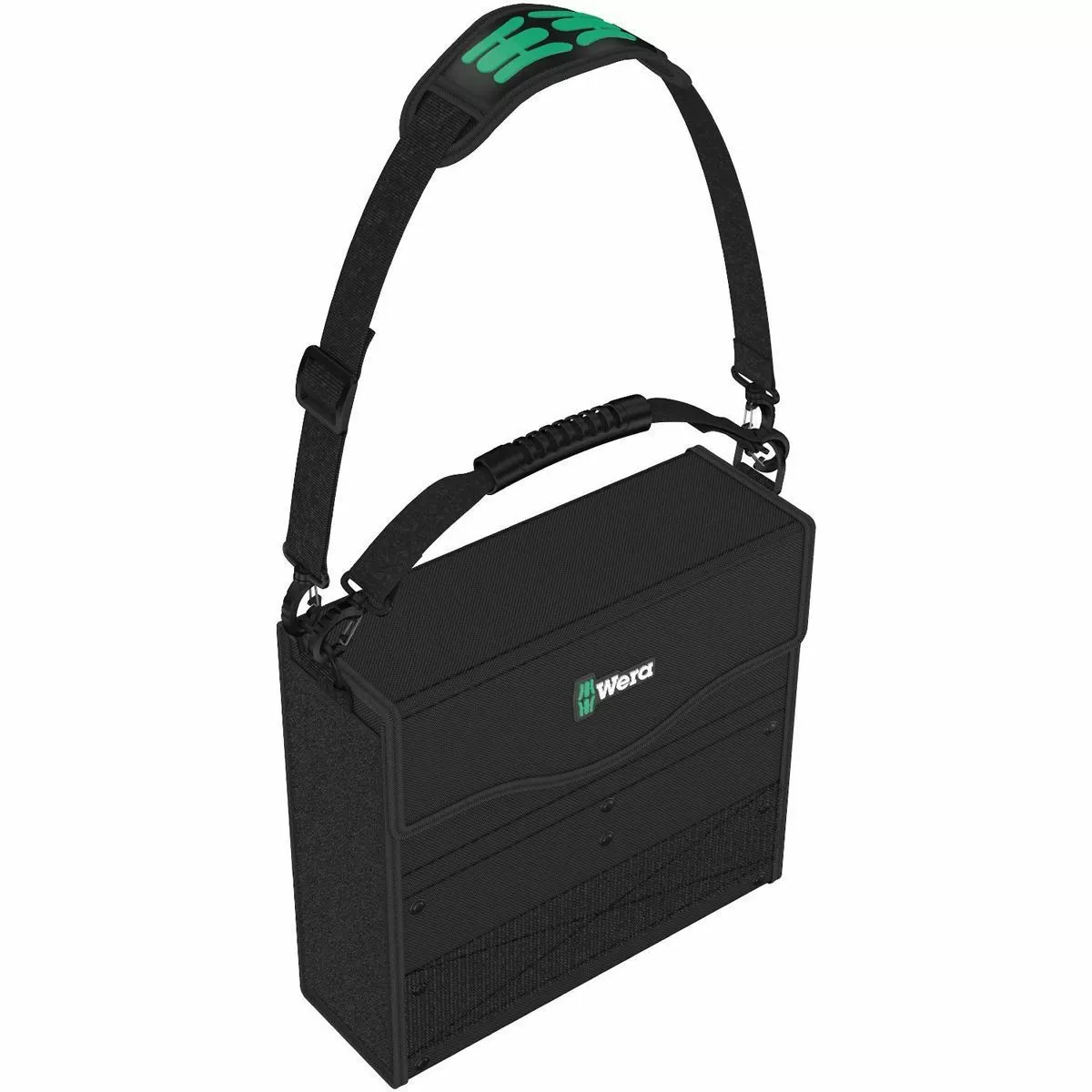 The Wera 2go 2 Tool Container is the ideal solution for convenient tool transport thanks to its compact design together with hook and loop fastener system. This is designed to allow Wera pouches and textile boxes that feature a hook and loop fastener zone on their reverse side to be attached to the walls of the tool container.